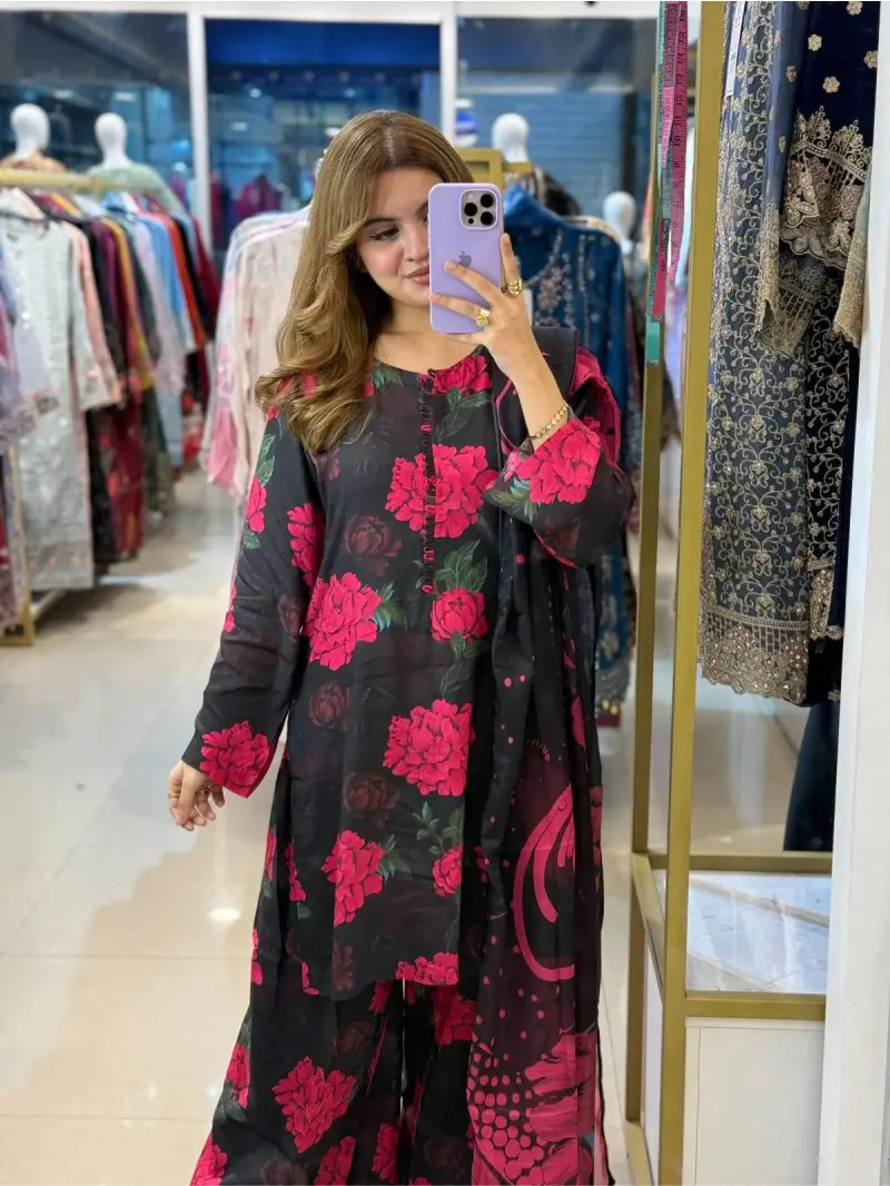 জর্জেট দুপাট্টা, প্রিন্টেড প্যান্টসহ প্রিমিয়াম লনের ড্রেস 🥰
