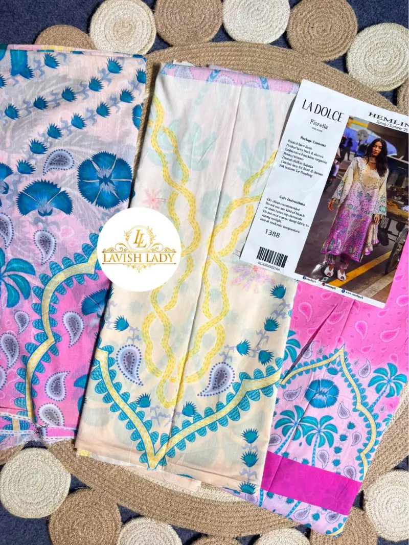 LA DOLCE Inspired Cotton Unstitched 3PC 1388