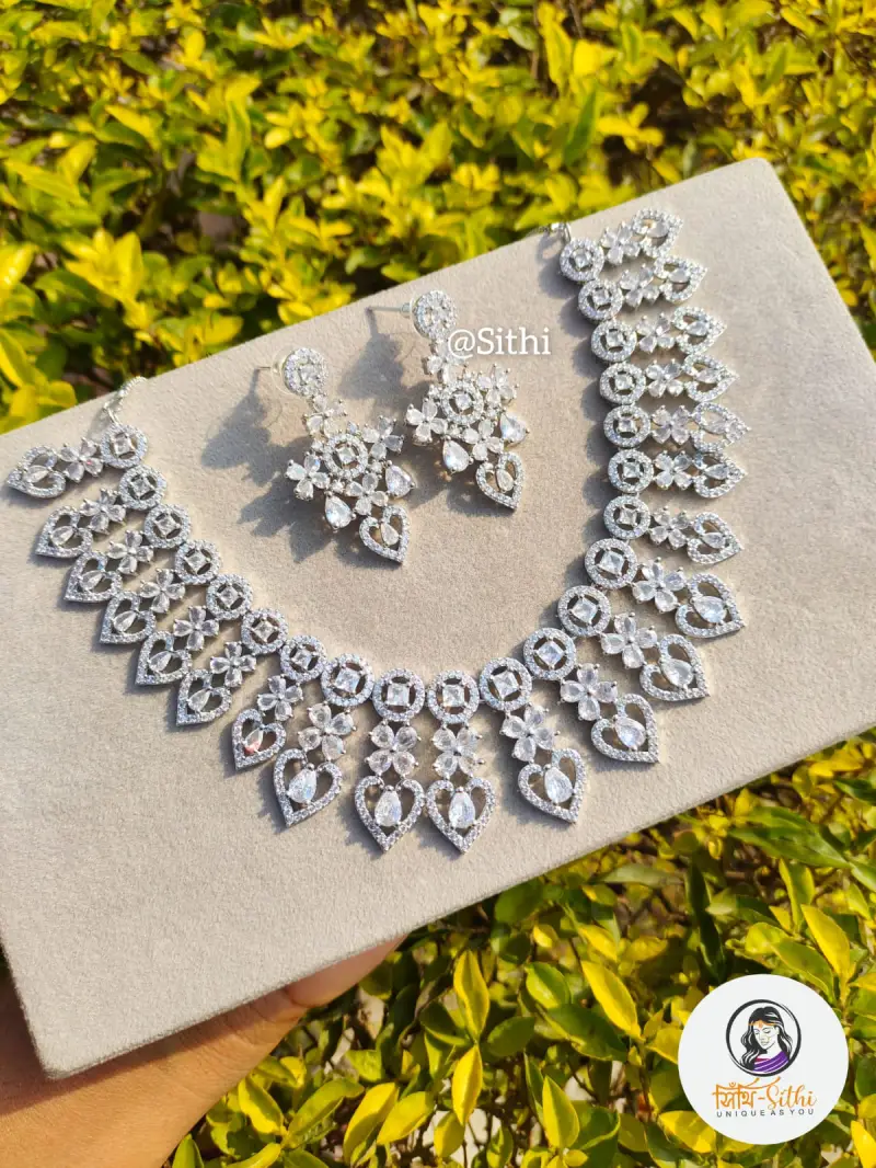 Material and Finish: Alloy Silver-toned Finish , American Diamond Setting.